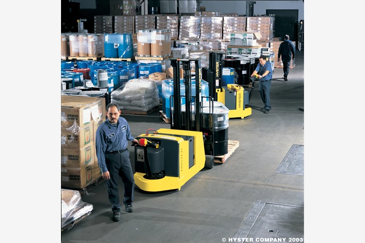 Whether your material handling jobs include unloading or loading trailers, dockside maneuvering, or stocking, the Hyster walkie counterbalanced stacker line of motorized pallet trucks gives you big capacity and productivity with the operational cost of a walkie rather than a rider.