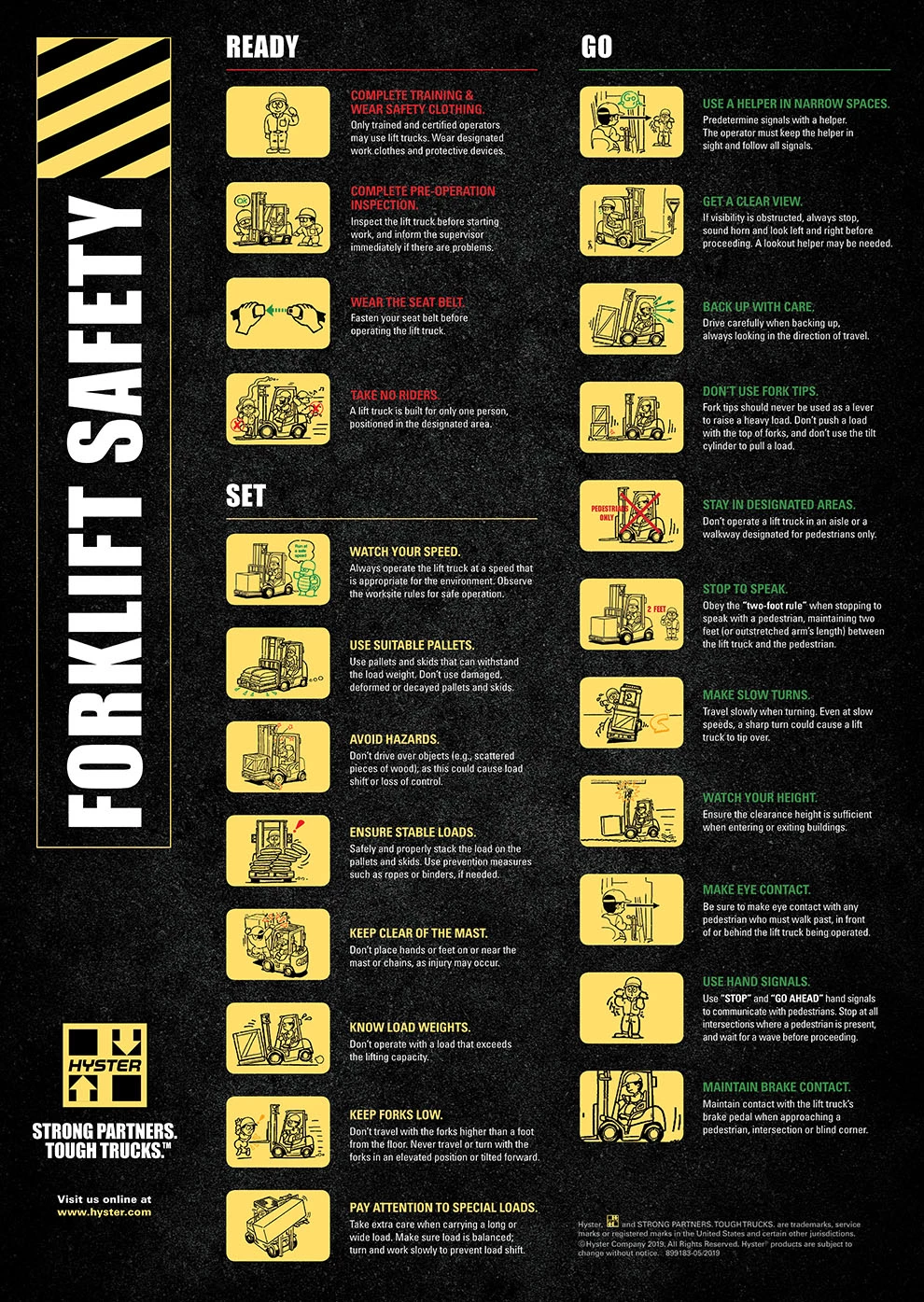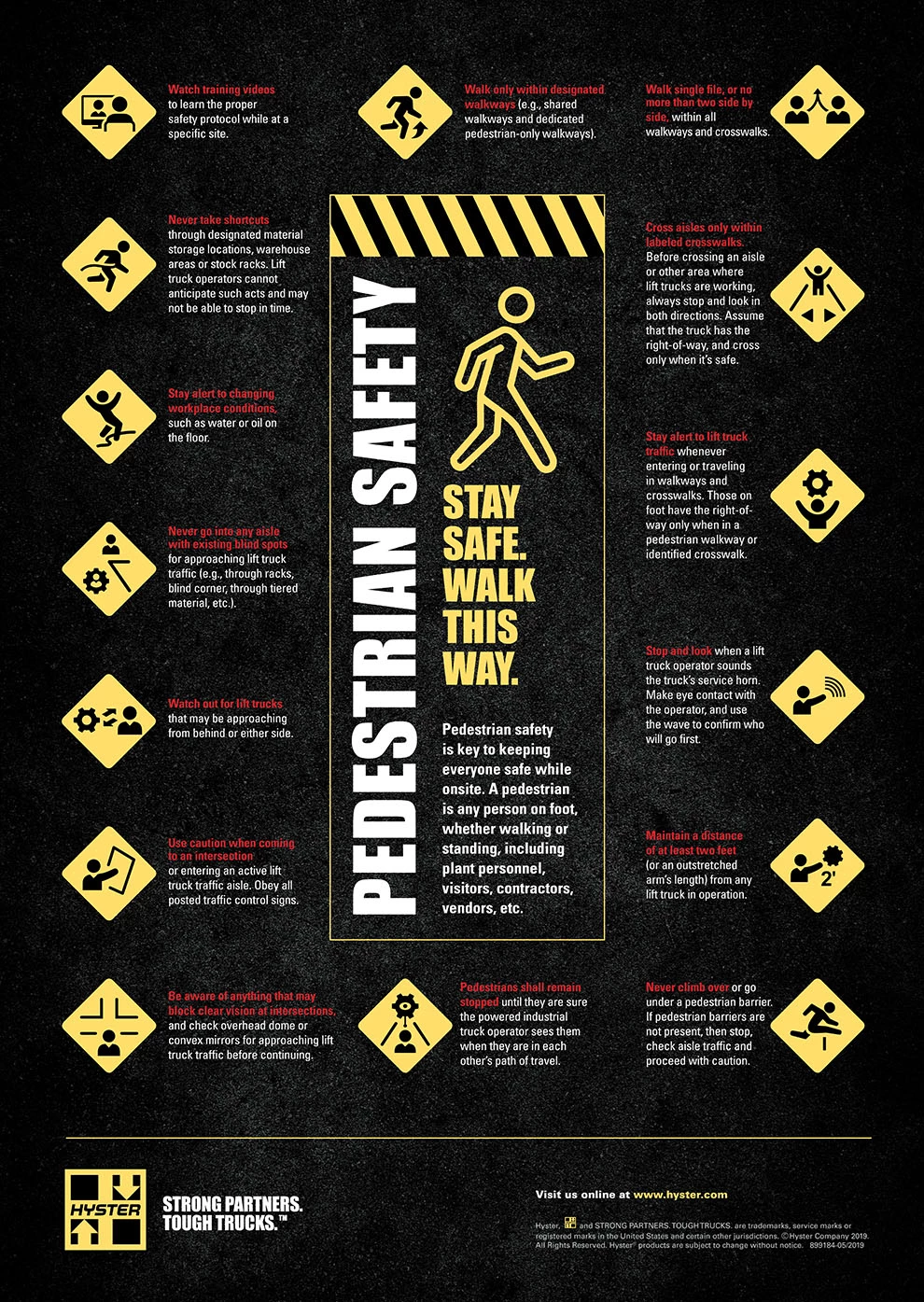 Keep safety top of mind in your facility with these printable forklift operation and pedestrian safety posters. Click to download in your preferred language. (Poster size 22" x 31").