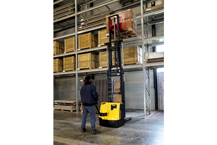 A no nonsense pedestrian high lift stacker for demanding warehouse applications