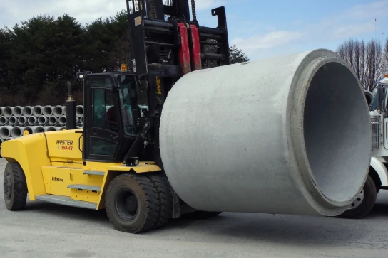 Gossett Concrete Pipe Co. looked to longtime supplier, Hyster Company, for new equipment that could handle its flourishing box culvert and large-diameter pipe business. Gossett’s most recent purchase, the Hyster H360-48HD, features the load capacity, durability, visibility and ergonomic features required for its heavy duty applications.
