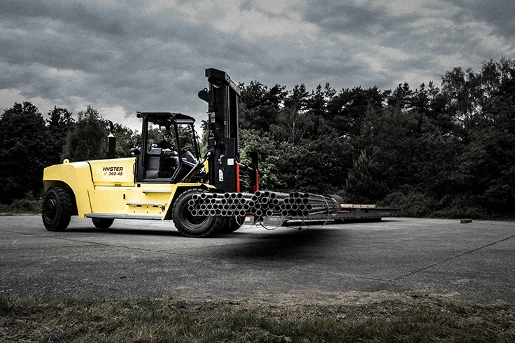 The truck has been engineered for long load centers, wide loads and heavy duty-cycle conditions. Oversized and reinforced mast channels, rollers, stub shafts and chain anchors cater to heavy duty applications. A special purpose-built mast design for this truck series has been developed from the ground up featuring less mast deflection than comparable products with overhead tilt.